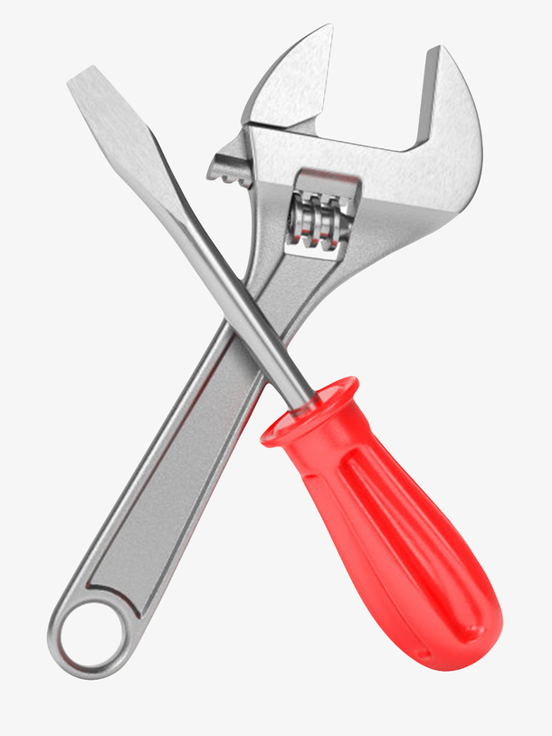 银色交叉放置的螺丝刀和活络扳手